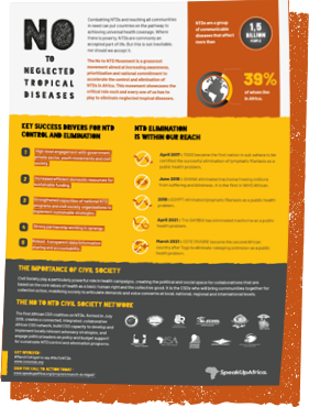 The No to NTD Movement is a grassroot movement aimed at increasing awareness, prioritization and national commitment to accelerate the control and elimination of NTDs in Africa. This movement showcases the critical role each and every one of us has to play to eliminate neglected tropical diseases.